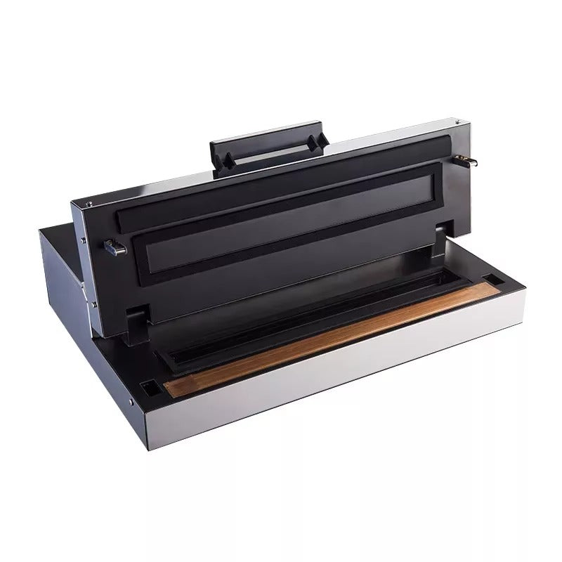 La machine sous vide VA500 est un appareil à aspiration externe. Elle est équipée de deux pompes et d'une puissance de 290W, permettant l'extraction de l'air. La pression est réglable jusqu'à -0.95 bars.